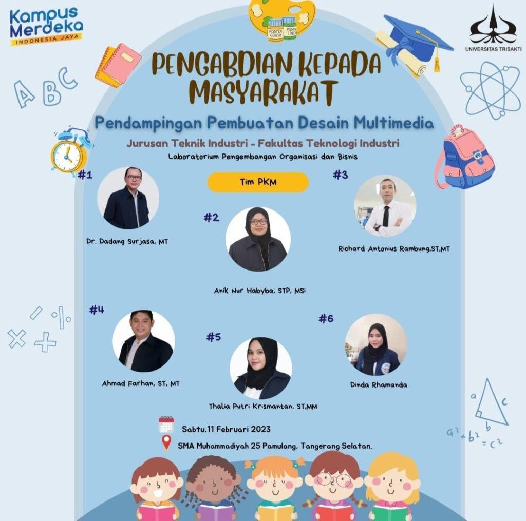 Kegiatan PKM yang melibatkan Dosen, Laboran dan Asisten Lab Pobis berlangsung di SMA Muhammadiyah 25 Pamulang Tangerang Selatan pada tanggal 11 Februari 2023 dengan Topik Pendampingan pembuatan desain multimedia untuk para guru di SMA Muhammadiyah 25 Pamulang Tangerang Selatan.